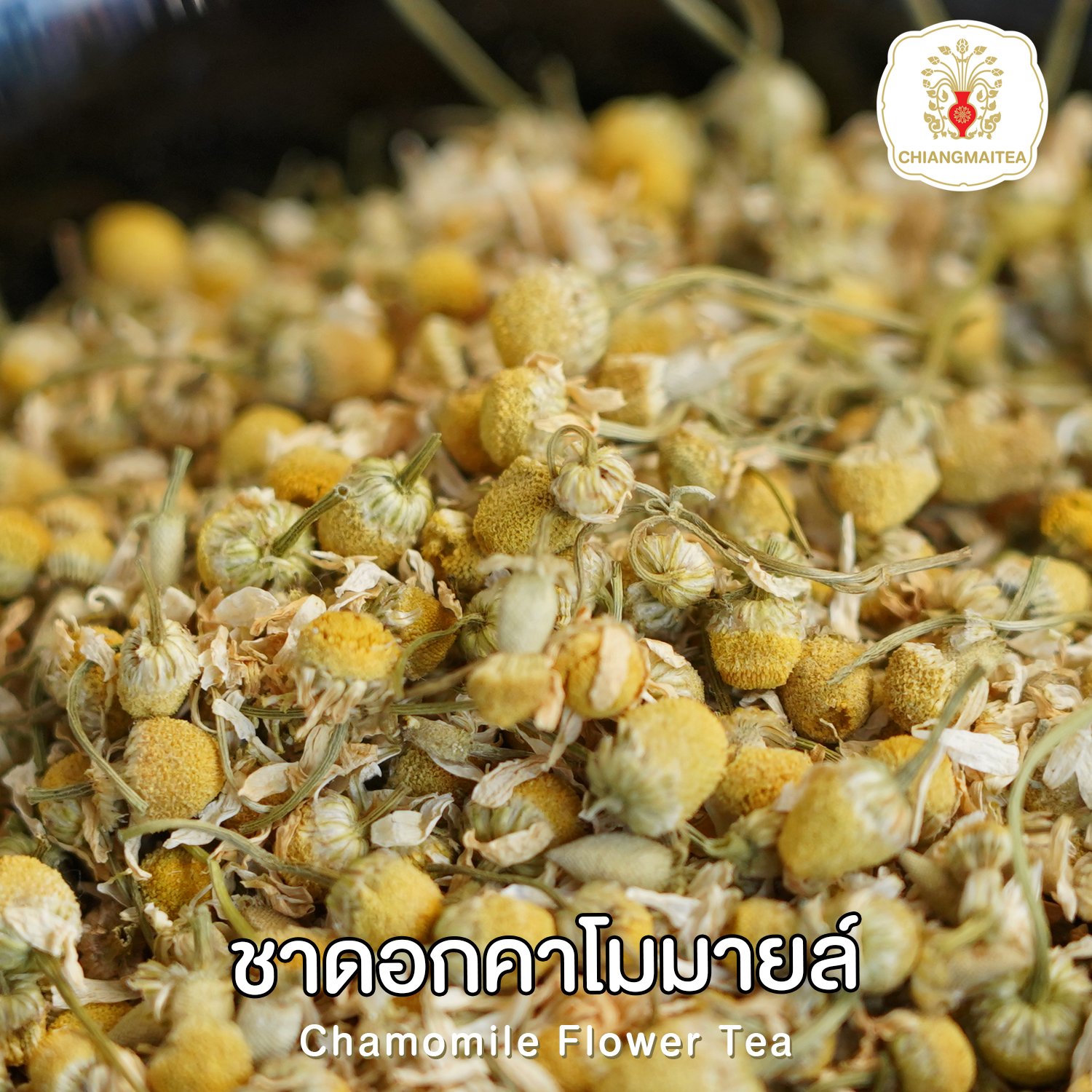 ดอกคาโมมาย (Chamomile FlowerTea) 100 g. ช่วยให้นอนหลับสนิท นอนสบาย การผ่อนคลายจากภาวะความเครียดได้ กระตุ้นการทำงานของระบบภูมิคุ้มกัน ช่วยเรื่องระบบทางเดินอาหาร ในดอกคาโมมายล์มีน้ำมันธรรมชาติซึ่งมีคุณสมบัติทำให้ผ่อนคลายกล้ามเนื้อ จึงช่วยทำให้เราหลับสบายขึ้น และกลิ่นที่หอมยังช่วยเรื่องผ่อนคลายเป็นอย่างดี