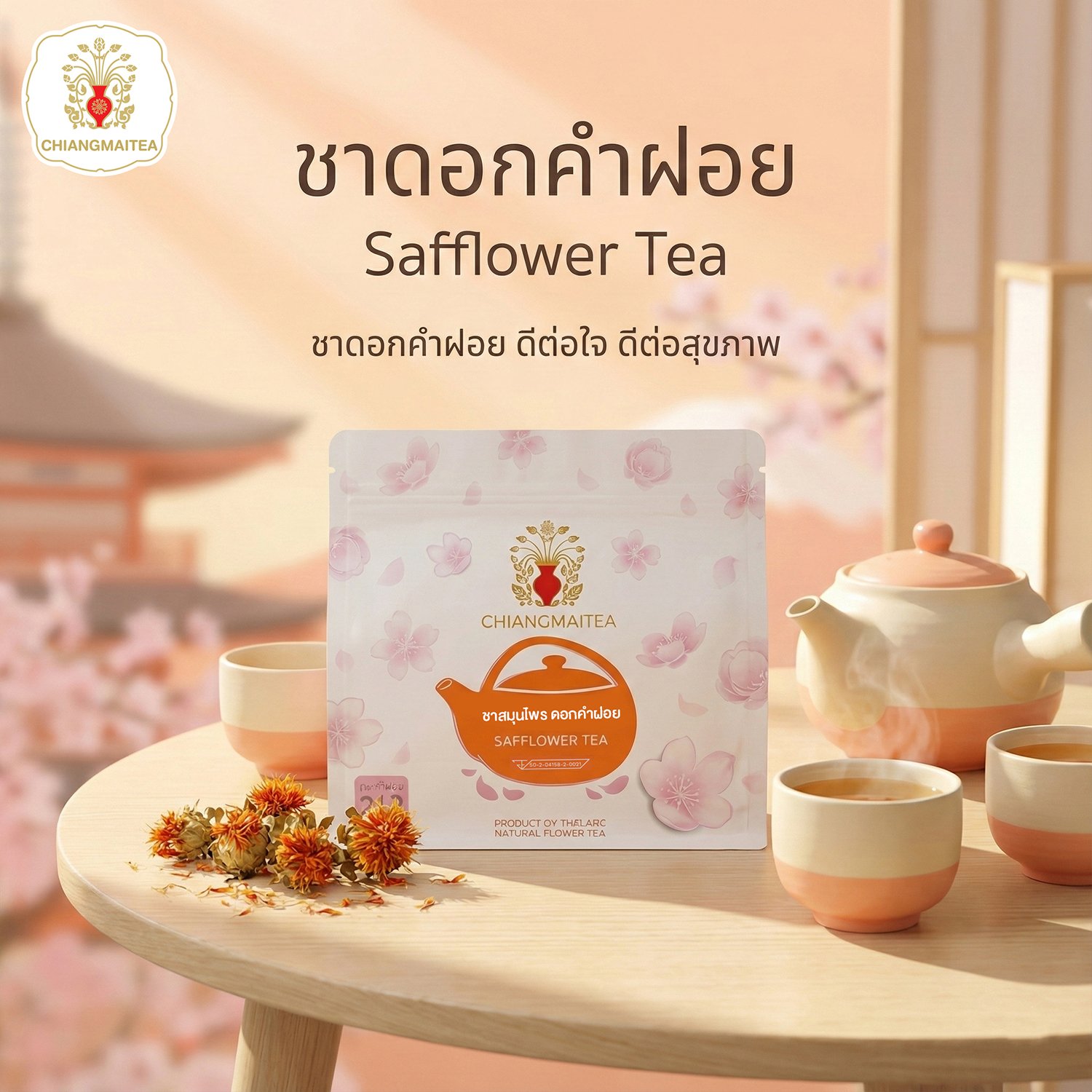 ที่ผ่านการคัดกรองเป็นพิเศษ และอบฆ่าเชื้อซ้ำ สามารถมั่นใจได้ในความสะอาดและสัมผัสได้ถึงกลิ่นหอมที่แท้จริงของชาดอกคำฝอยอีกด้วย ดอกคำฝอย เป็นดอกไม้ที่ถือว่าเป็นสมุนไพรอีกชนิดหนึ่ง ชาดอกคำฝอยมีประโยชน์เด่นในเรื่องของการลดไขมัน คลอเลสเตอรอลในเลือดและช่วยให้เลือดภายในร่างกายหมุนเวียนได้เป็นอย่างดี สีของน้ำชาดอกคำฝอยเป็นสีเหลืองทอง กลิ่นหอมละมุน กลมกล่อม ดื่มได้ง่าย และสามารถดื่มได้เป็นประจำ