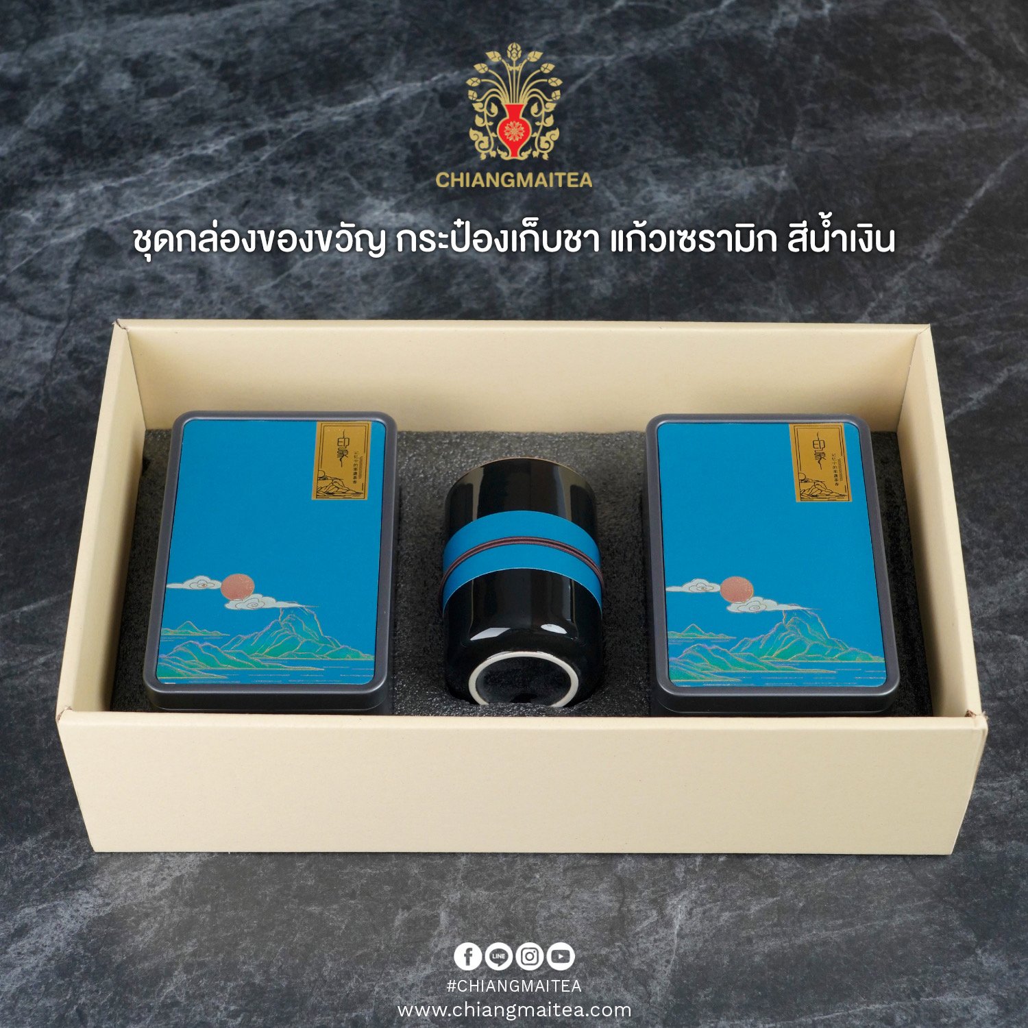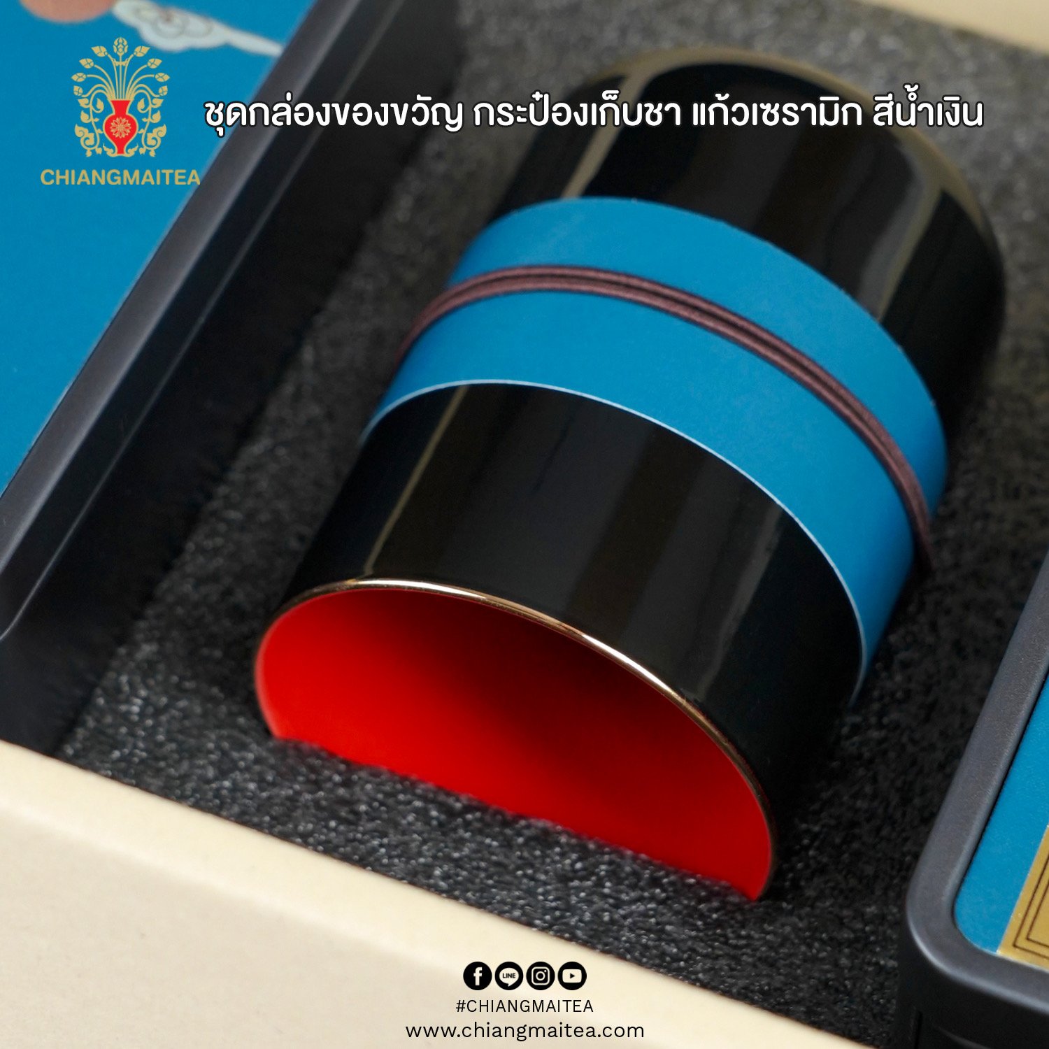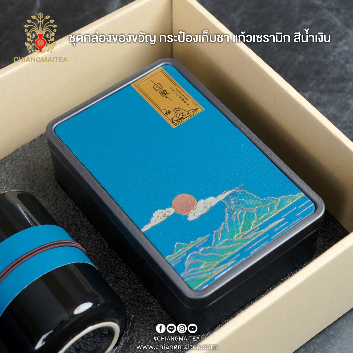 SKU : ชุดกล่องของขวัญ กระป๋องเก็บชา แก้วเซรามิก สีน้ำเงิน