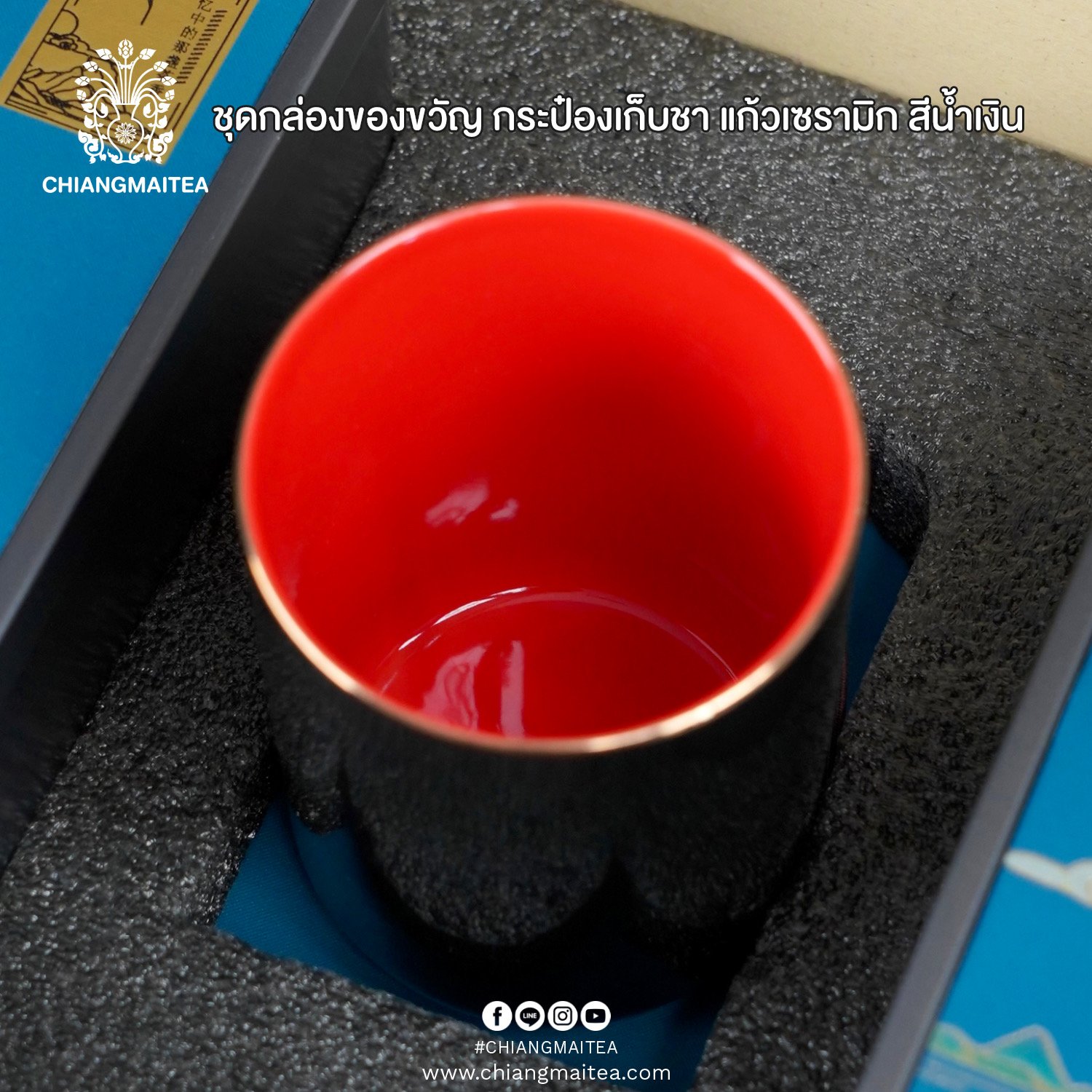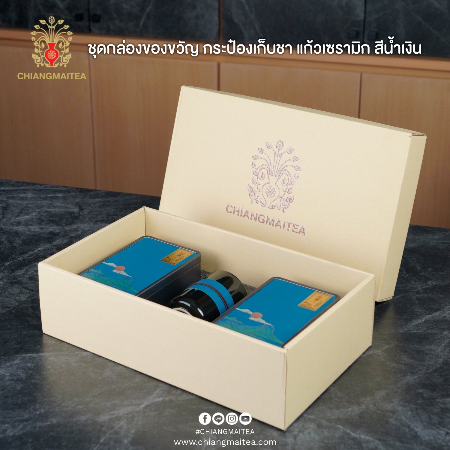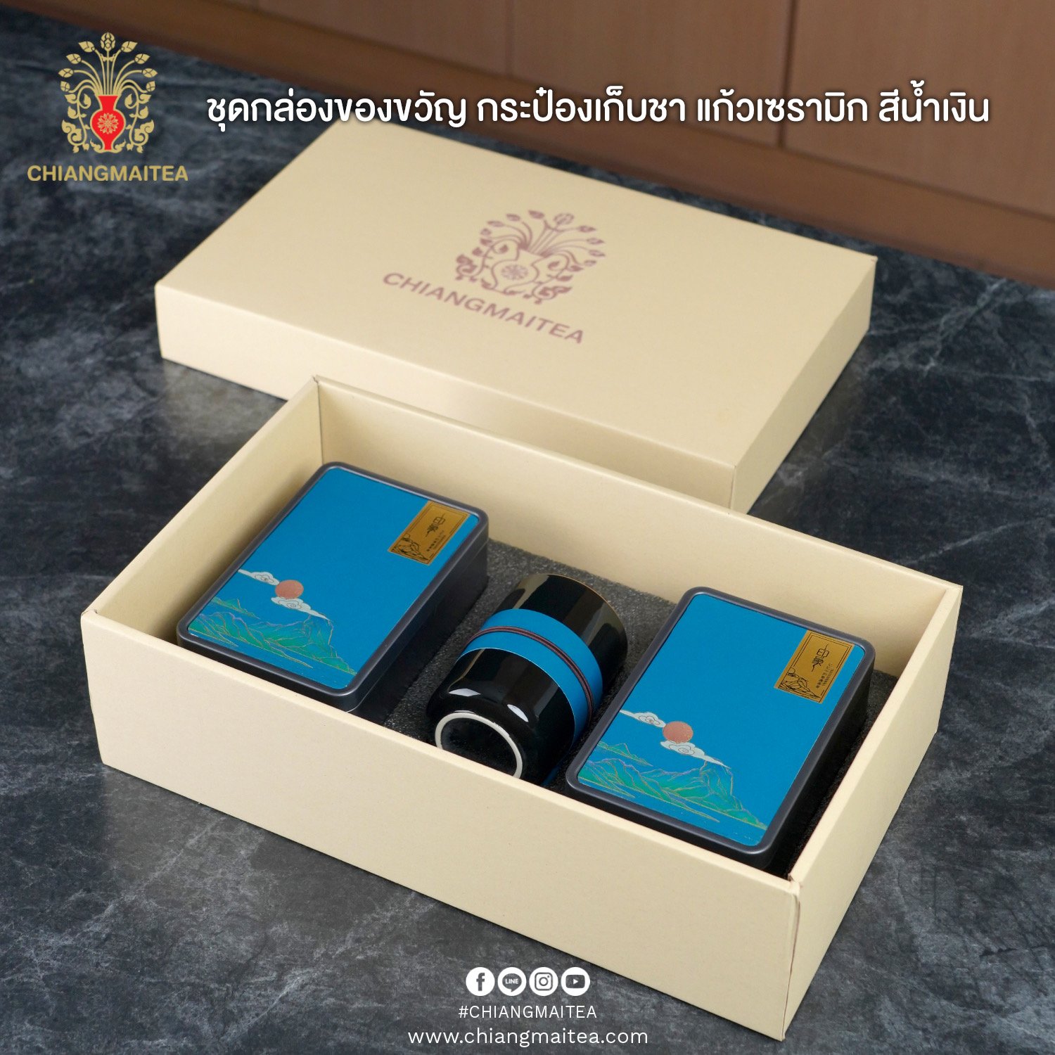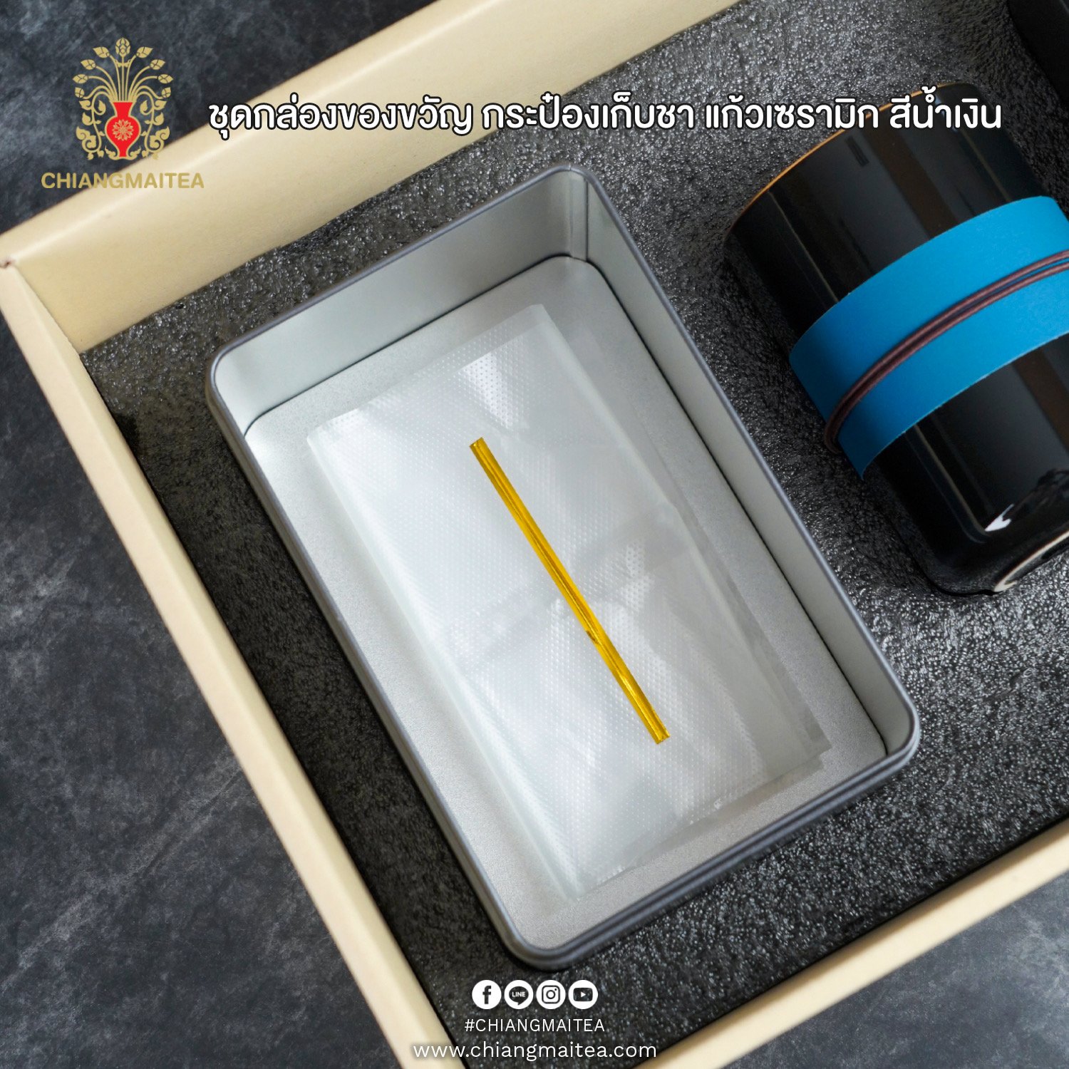 SKU : ชุดกล่องของขวัญ กระป๋องเก็บชา แก้วเซรามิก สีน้ำเงิน